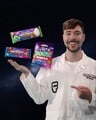 Images pertaining to Feastables, a chocolate company founded by internet personality MrBeast.