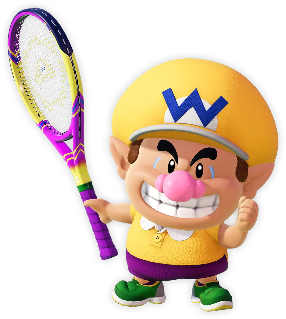 | Wario | Mario Tennis | An indigo letter "W". | Taken directly from the "W" insignia sewn on his yellow cap. | |