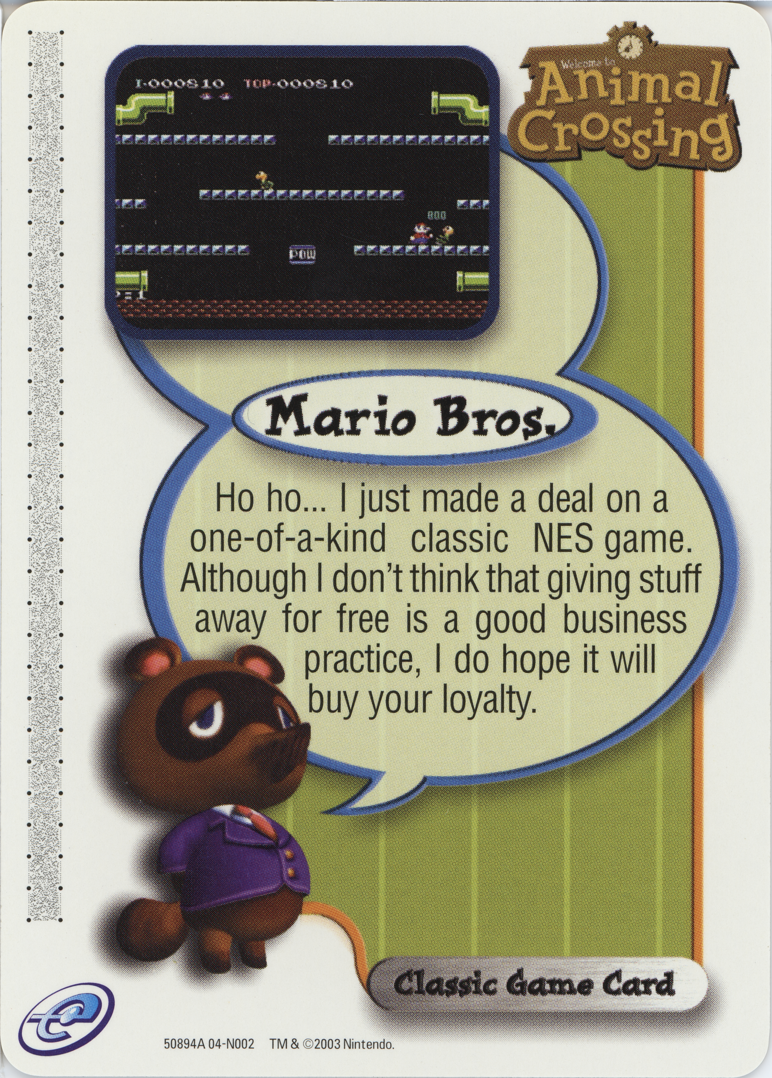 Description | Back of the N02 Mario Bros. e-Reader card from Animal Crossing-e |