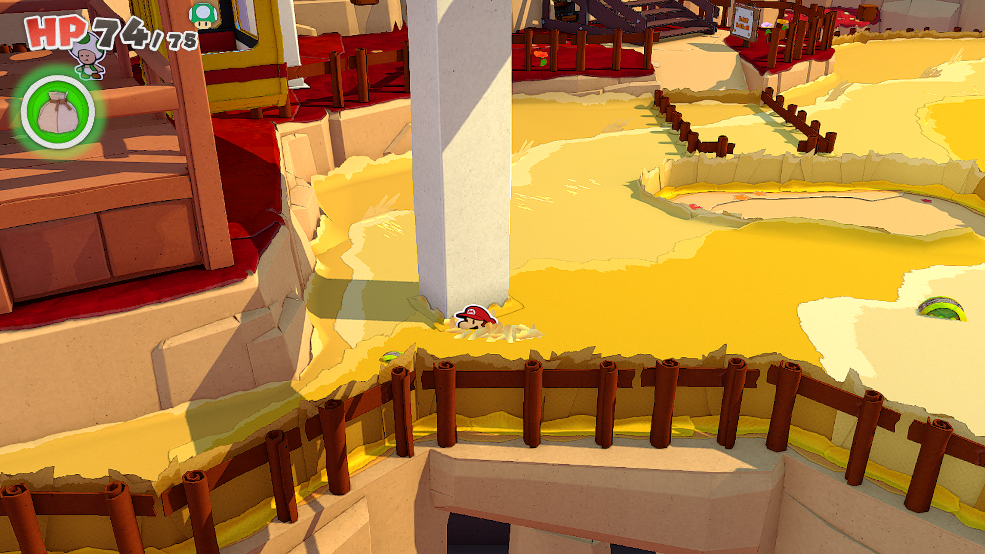 | Description | Mario standing near a 10-Coin and a 100-Coin in Autumn Mountain of The Origami King. |