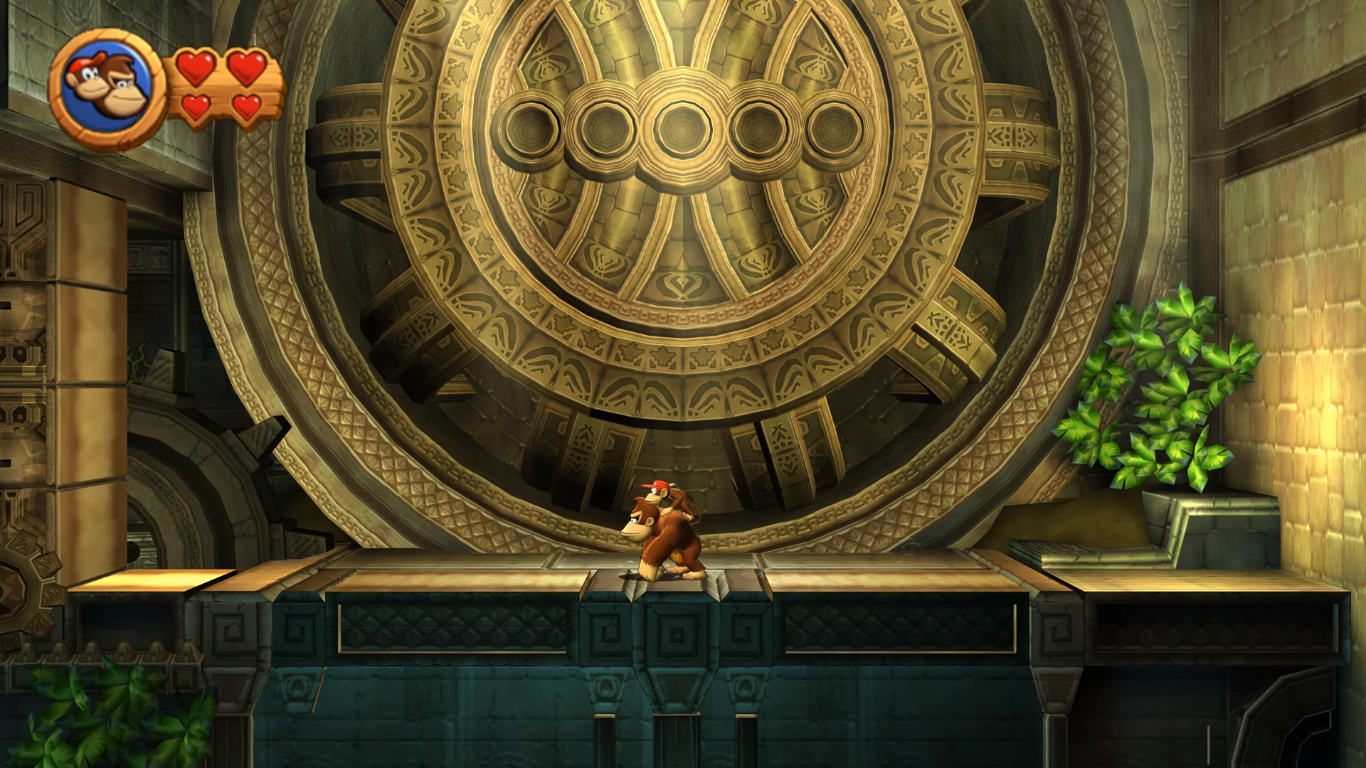 | Description | Donkey Kong and Diddy Kong in a room of Button Bash with a massive, circular structure in the background, from Donkey Kong Country Returns |