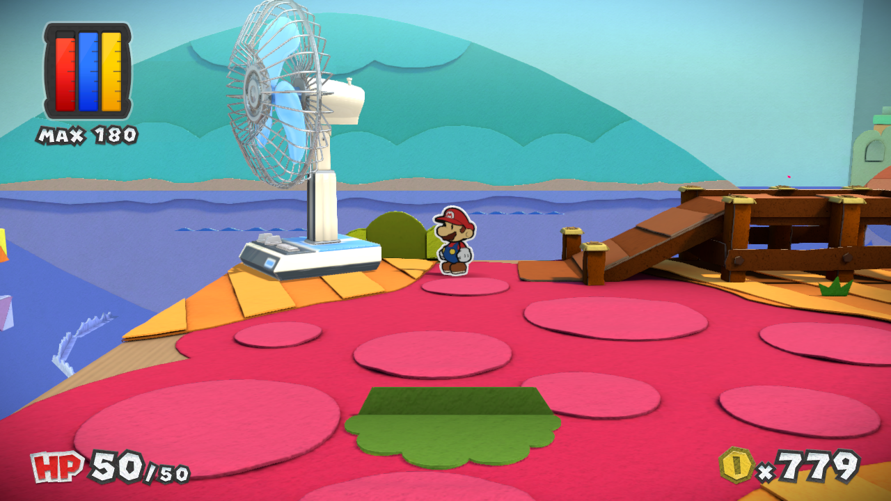 | Description | Mario near the Fan Thing in Cherry Lake of Paper Mario: Color Splash. |