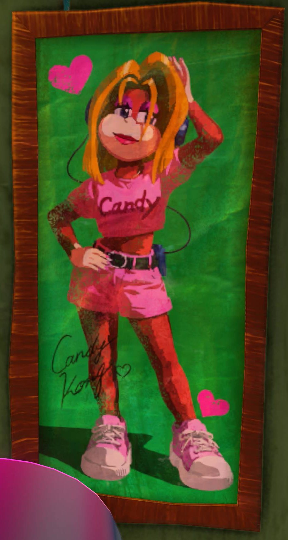 Description | A portrait of Candy Kong in Donkey Kong Bananza: DK Island & Emerald Rush |