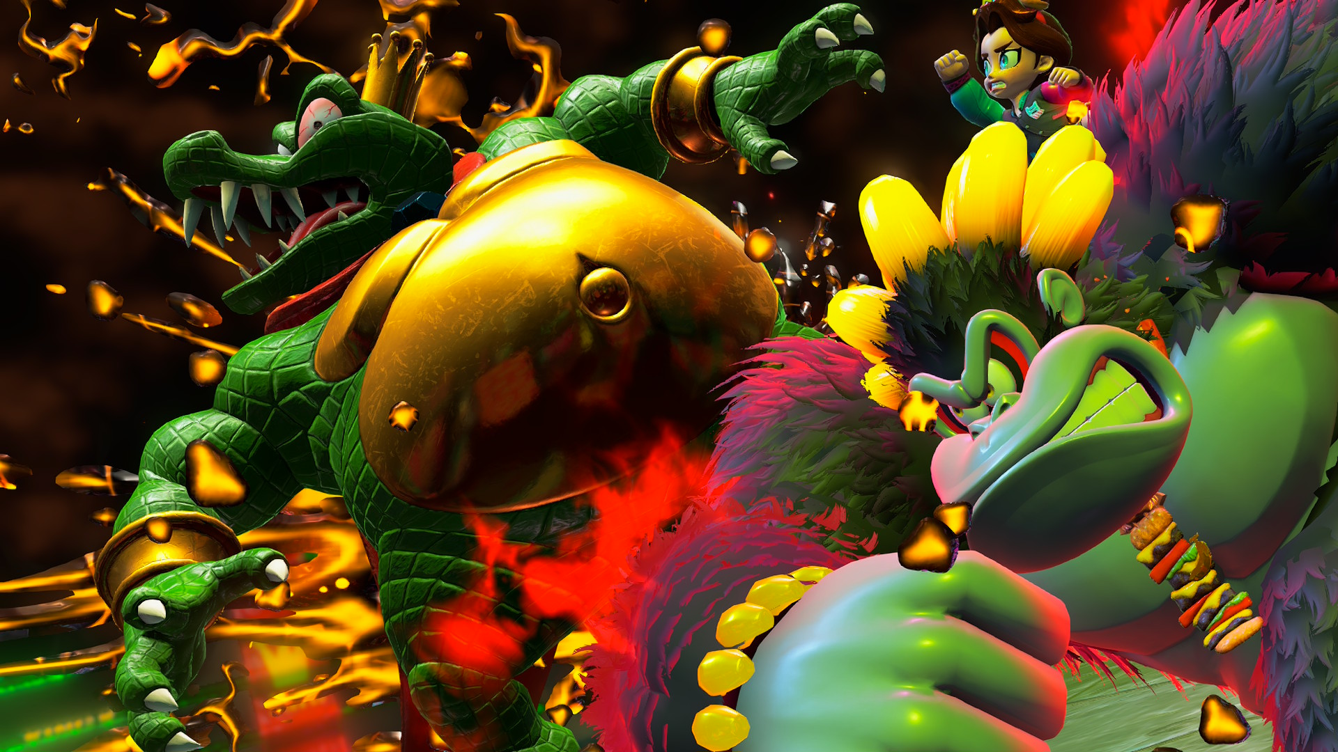 | Description | In-game screenshot of the very powerful final punch to K. Rool, King of Rot's guts in Donkey Kong Bananza |
