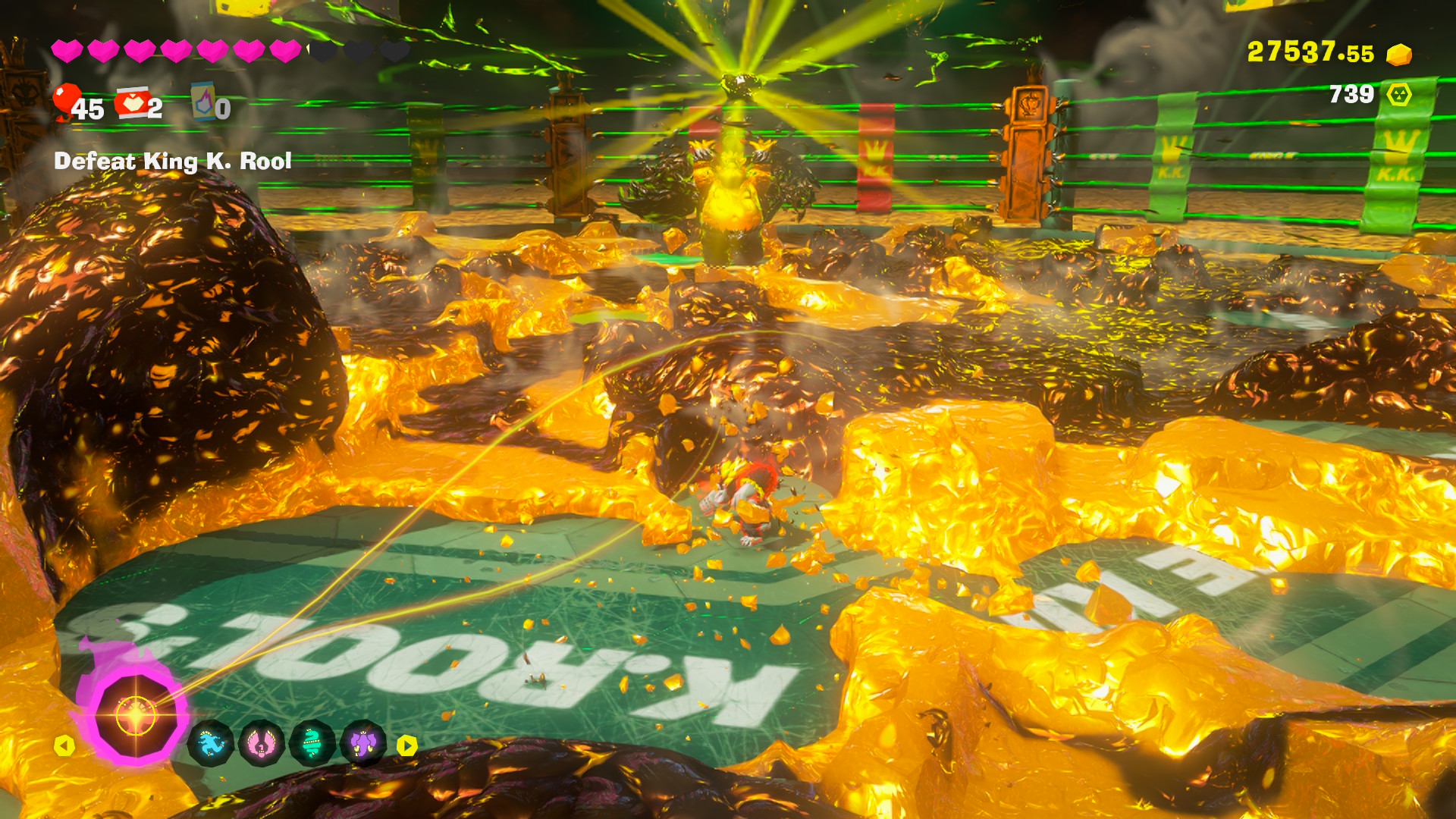 | Description | In-game screenshot of the final boss fight with K. Rool, King of Rot in Donkey Kong Bananza |