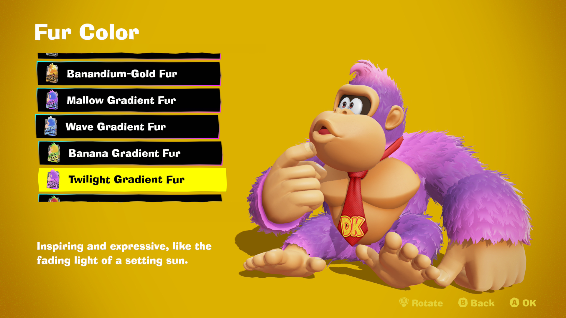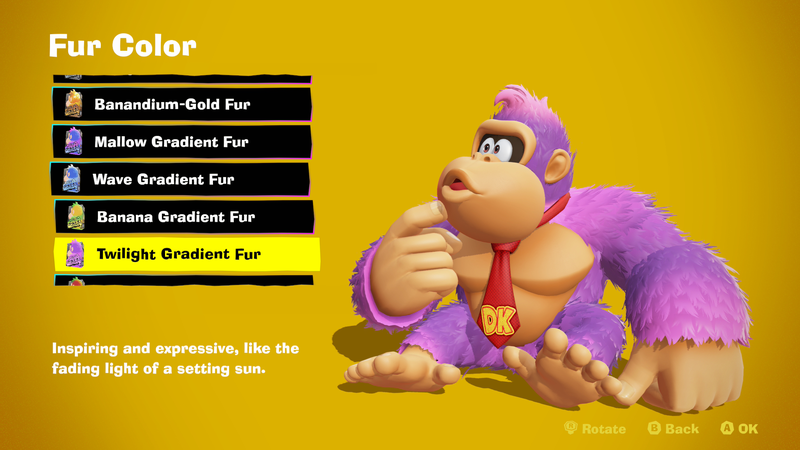 | current | 16:20, August 18, 2025 | 1,920 × 1,080 (1.31 MB) | TomZhao (talk | contribs) | {{aboutfile |1=Twilight Gradient Fur |2=''Donkey Kong Bananza'' |3=Nintendo }} == Licensing == {{game-screenshot}} Category:Donkey Kong Bananza screenshots |