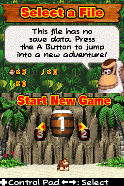 | Description | The file selection screen in DK: Jungle Climber |