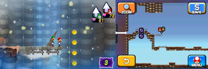 | Description | Mario and Luigi near 4 Coins in Dreamy Mount Pajamaja accessed by the Mega Pi'illo named Phil of Mario & Luigi: Dream Team. |