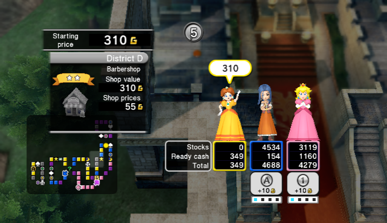 Description | Gameplay screenshot of Alltrades Abbey from Fortune Street |