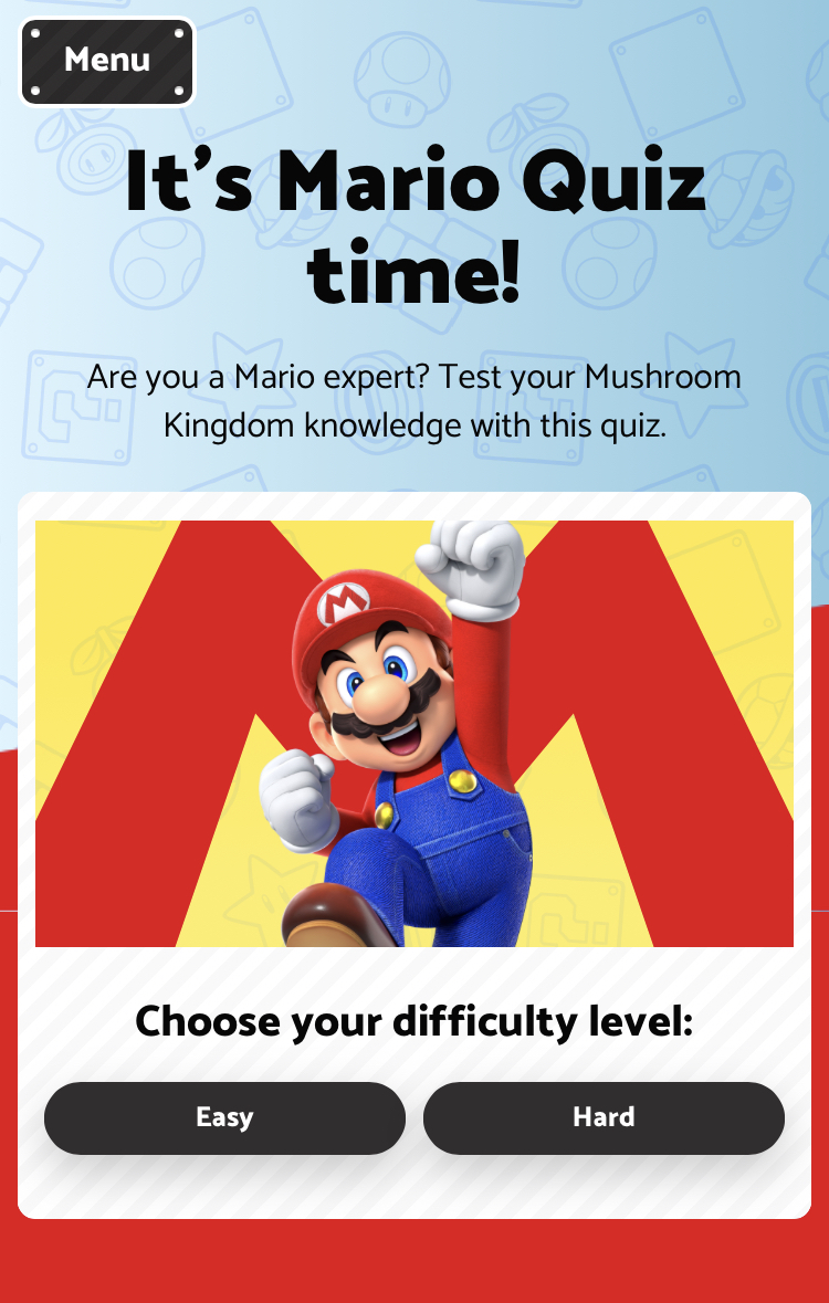 | Description | Title screen for the mobile version of It's Mario Quiz time! |