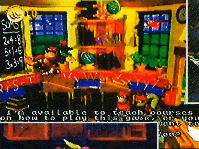 | Description | Pre-release screenshot of Kong Kollege showing that Funky Kong was used as a placeholder for Wrinkly Kong. |
