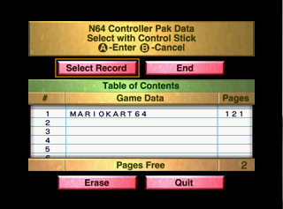 | Description | Mario Kart 64 Controller Pak manager screen |