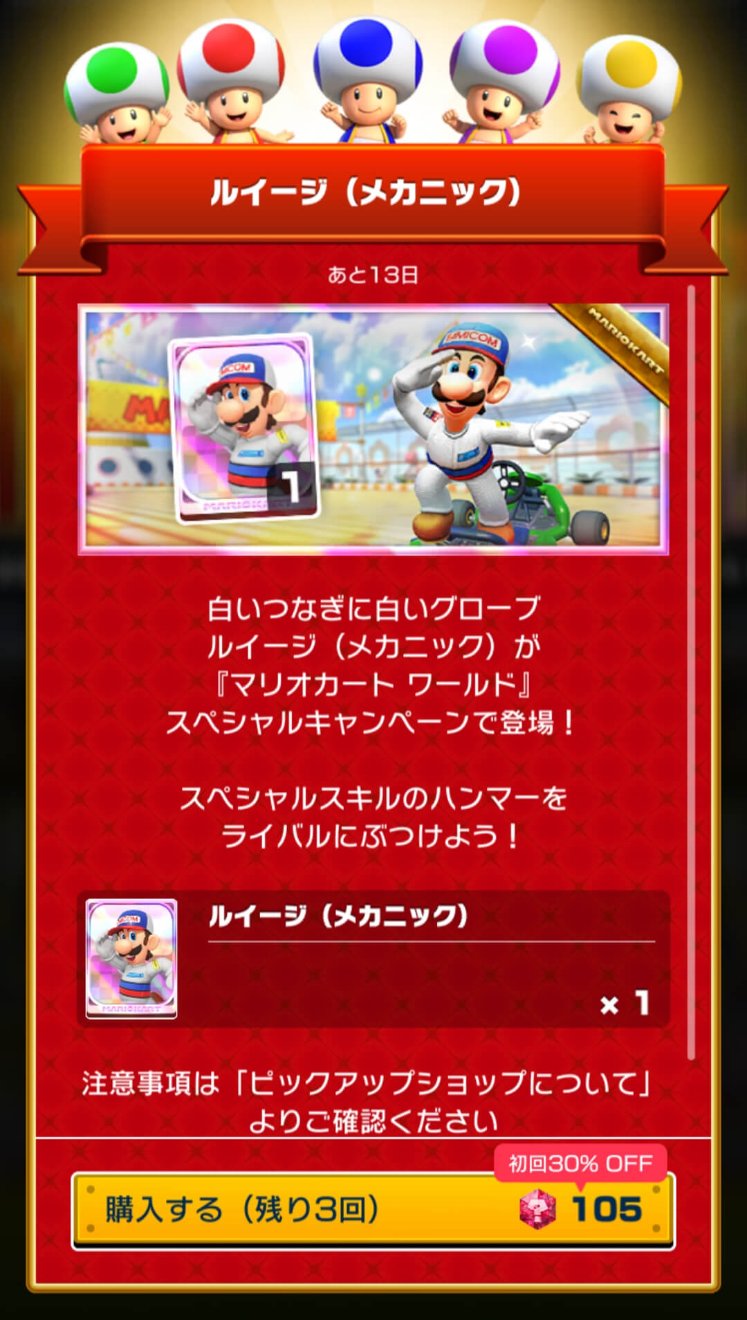 | Description | Screenshot of a special offer for Luigi (Mechanic) in the Spotlight Shop |