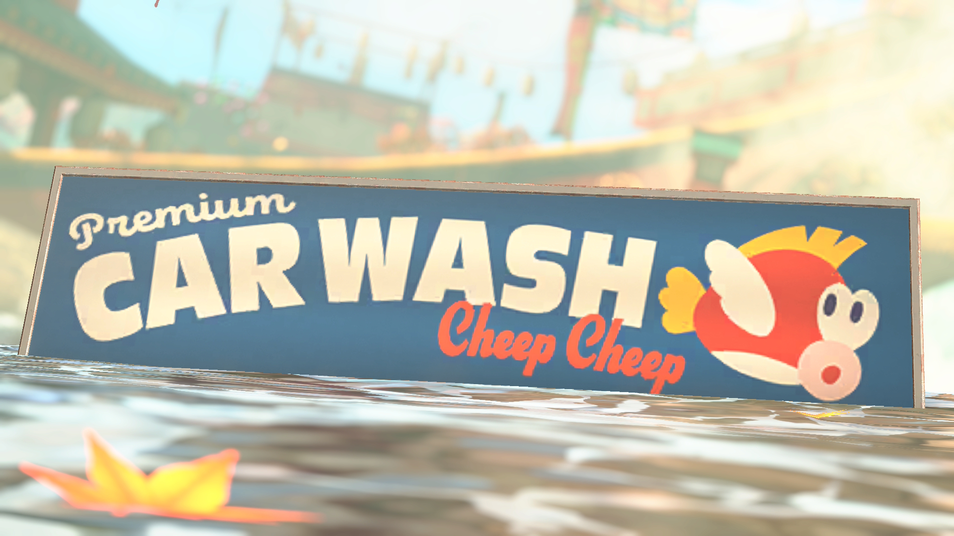 | Description | Cheep Cheep Premium Car Wash advert in Mario Kart World |