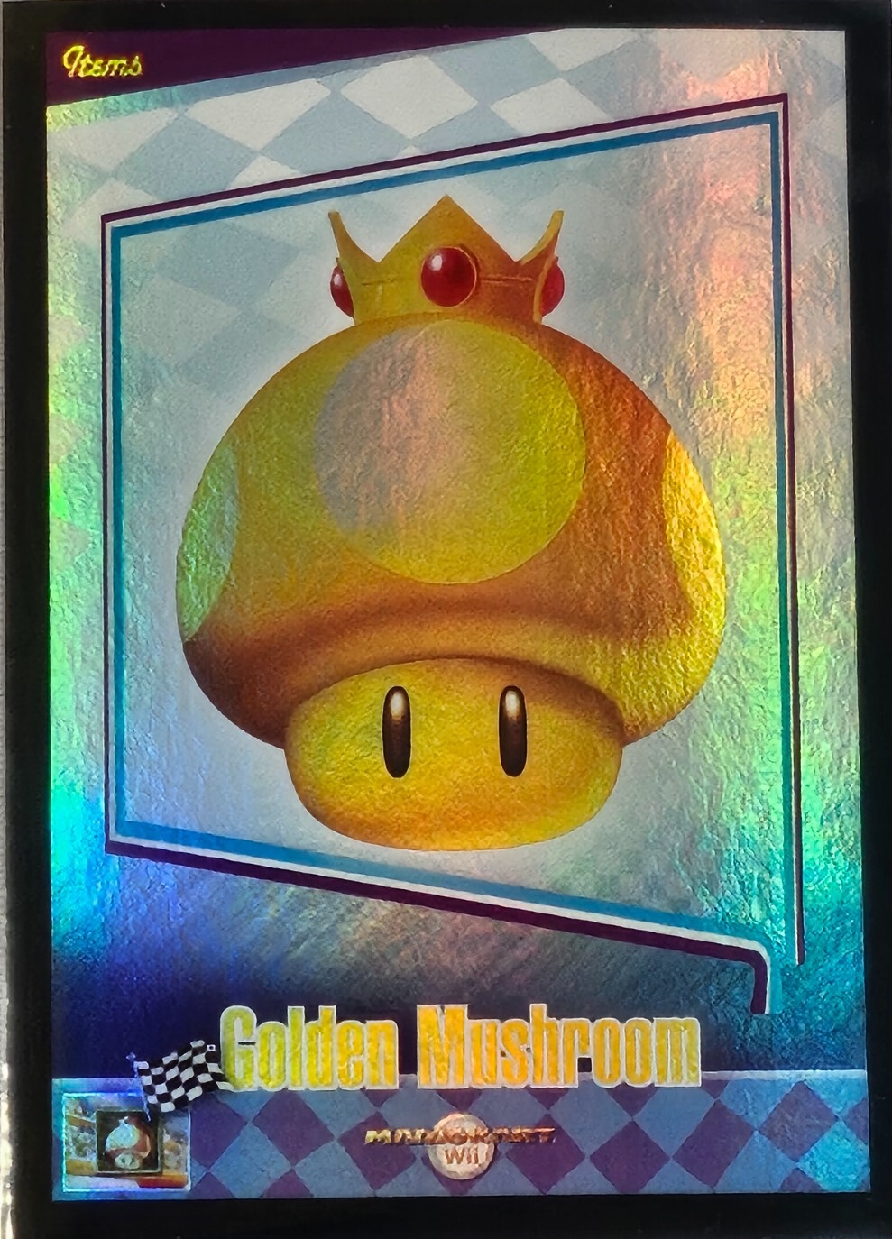 | Description | Golden Mushroom Foil Card in the Mario Kart Wii trading card. |
