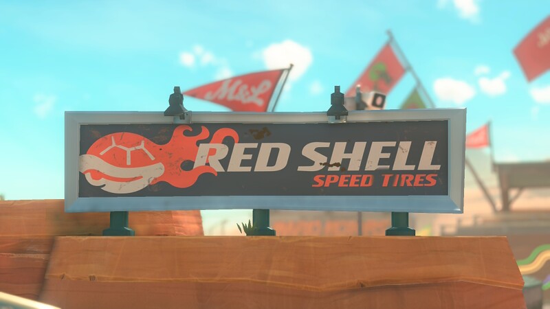 | Description | Red Shell Speed Tires advert in Mario Kart World |