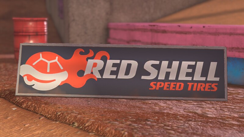 | Description | Red Shell Speed Tires advert in Mario Kart World |