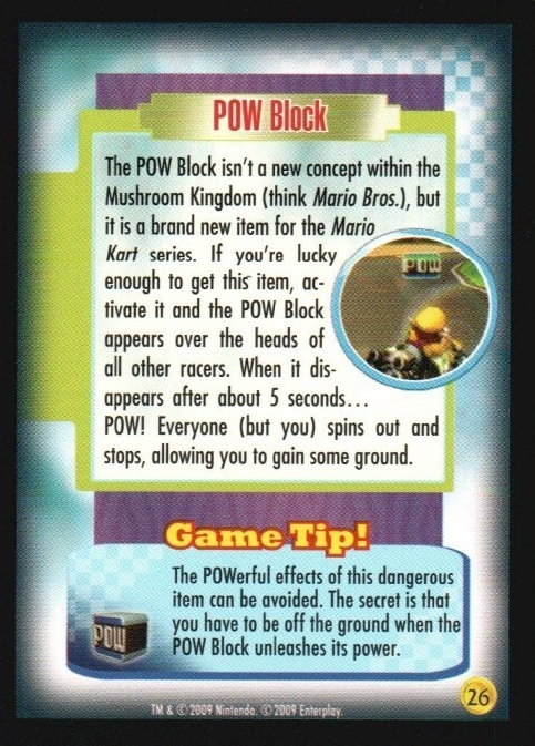 | Description | Backside of the Mario Kart Wii trading card of the POW Block. |