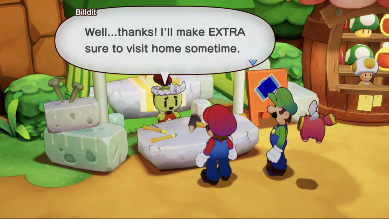 Description | Billdit during the A Mother's Worries side quest in Mario & Luigi: Brothership. |