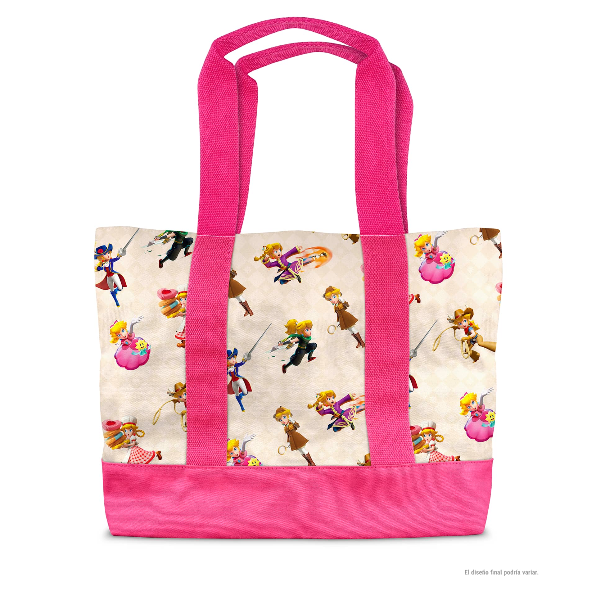 | Description | Shopping bag sold with Princess Peach: Showtime! on the European My Nintendo Store. The design on the bag consists of a pattern with Princess Peach's transformations from the game. |
