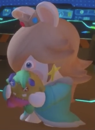 Description | Rabbid Rosalina scared in Mario + Rabbids Sparks of Hope |