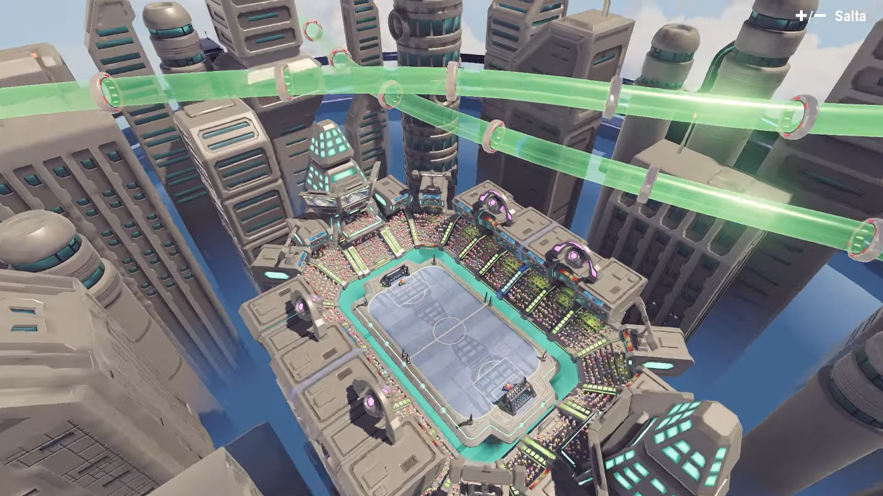 Description | An overhead view of Urban Rooftop from Mario Strikers: Battle League |