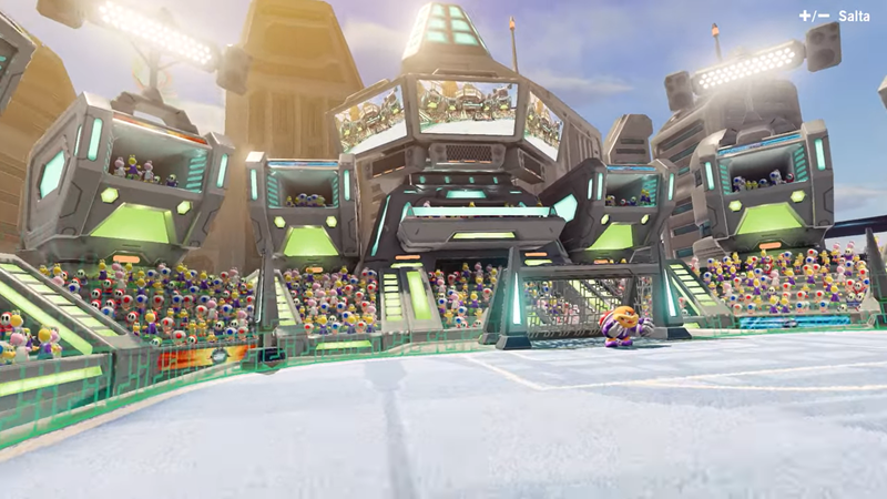 Description | A front view of Urban Rooftop from Mario Strikers: Battle League |