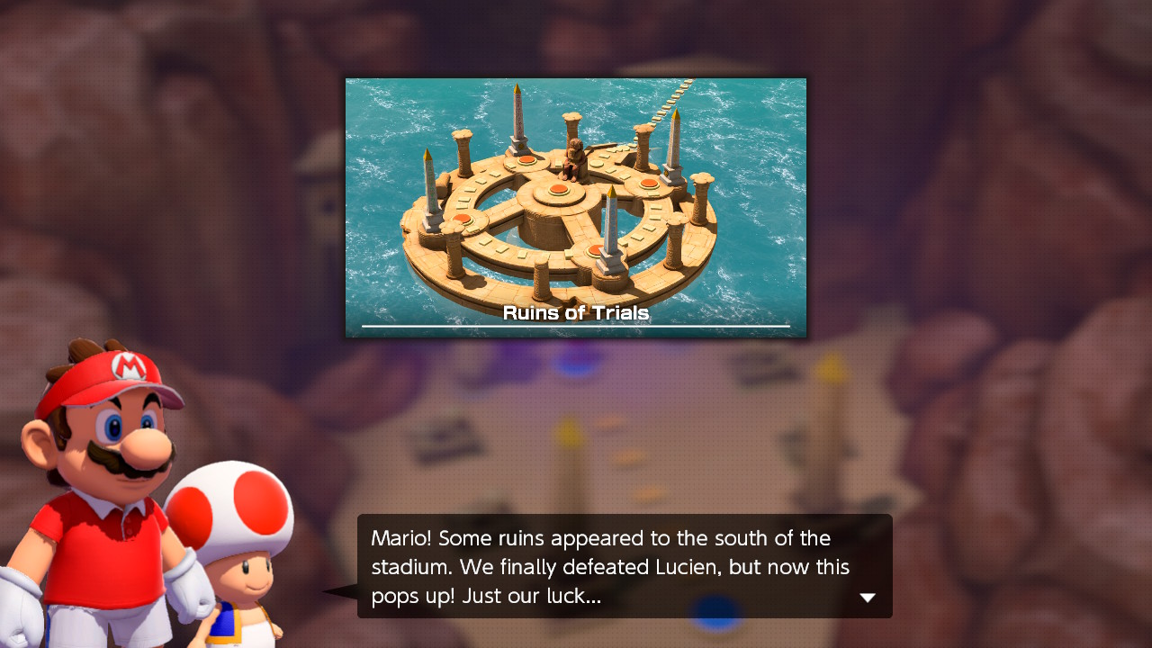 | Description | Toad notifies Mario about the appearance of the Ruins of Trials |