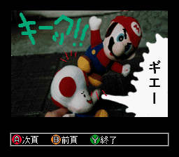 | current | 14:58, August 19, 2019 | 256 × 224 (14 KB) | Tvdart (talk | contribs) | {{aboutfile |1=Mario stomping on Toad. |2=https://blog.goo.ne.jp/randnetdd/e/cfc410127b996047cde65043d6e74237 |3=Unknown |4=N/A |5=http://blogimg.goo.ne.jp/user_image/7a/63/720530ec8d74c0ea4ad1ad7dcc2fe06b.png }} {{Category:Shitamachi_Ninjō_Gekijō_Im... |