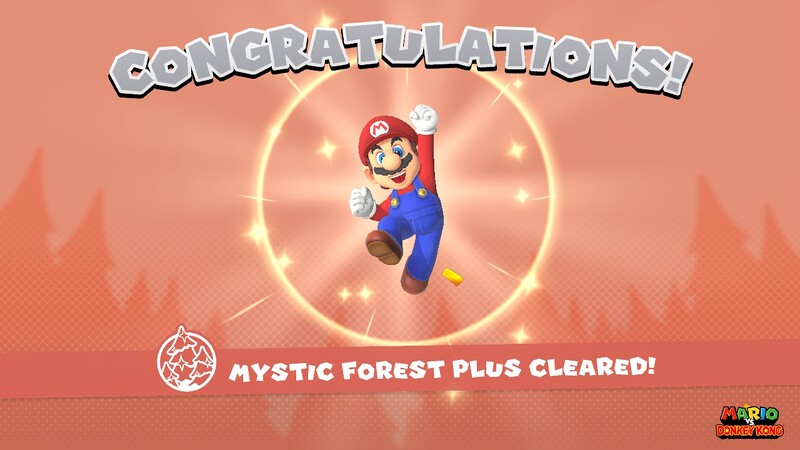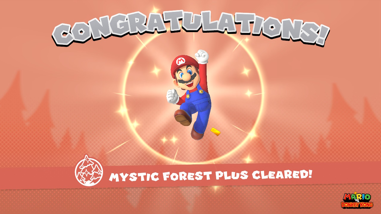 | Description | Screenshot of Mystic Forest Plus's clear screen from the Nintendo Switch version of Mario vs. Donkey Kong |