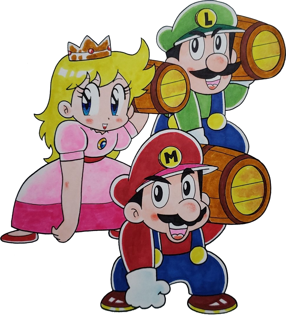 | Description | Mario, Luigi, and Princess Peach with barrels |
