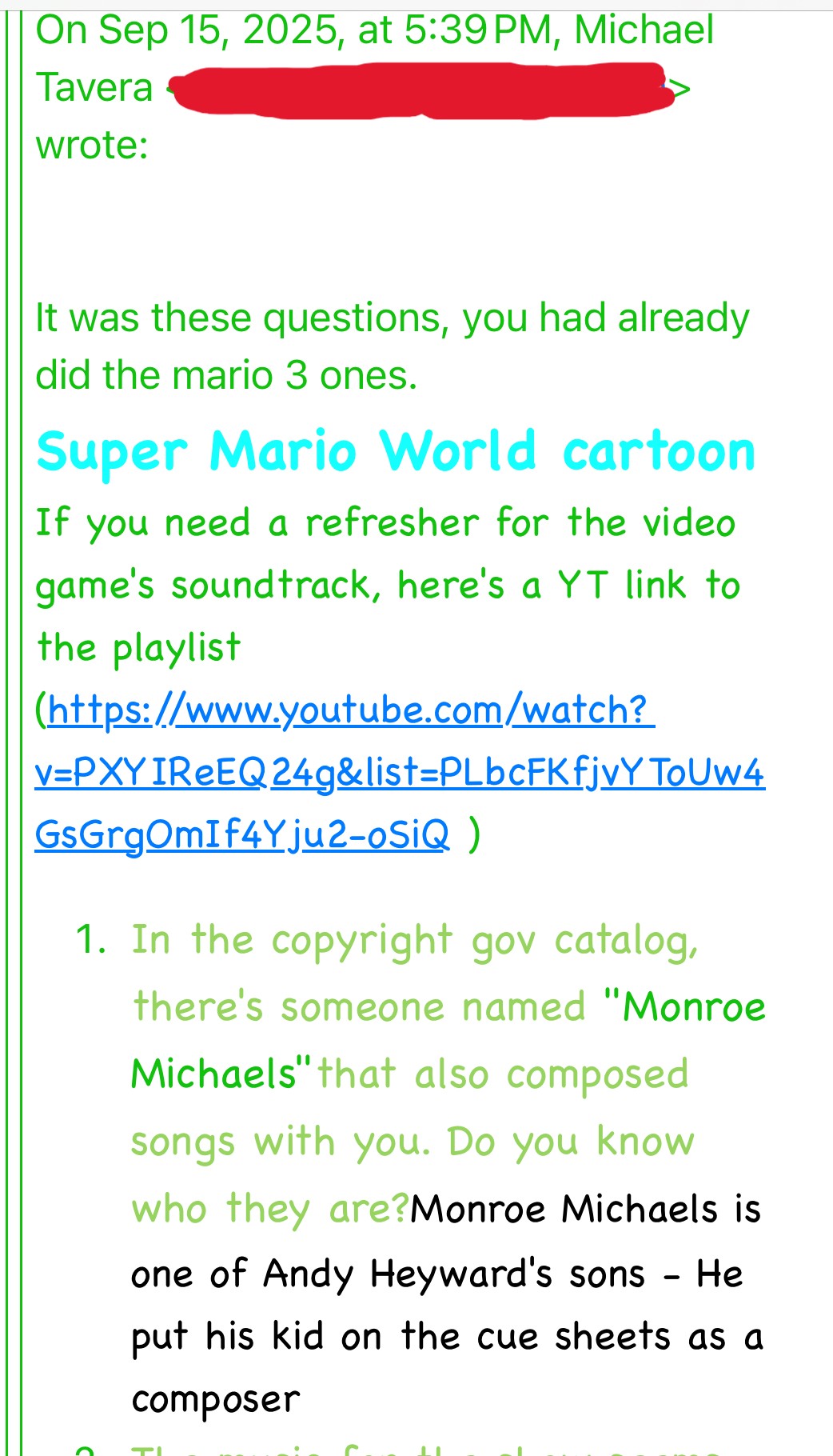 | Description | Michael Tavera explaining who Monroe Michaels is from email |