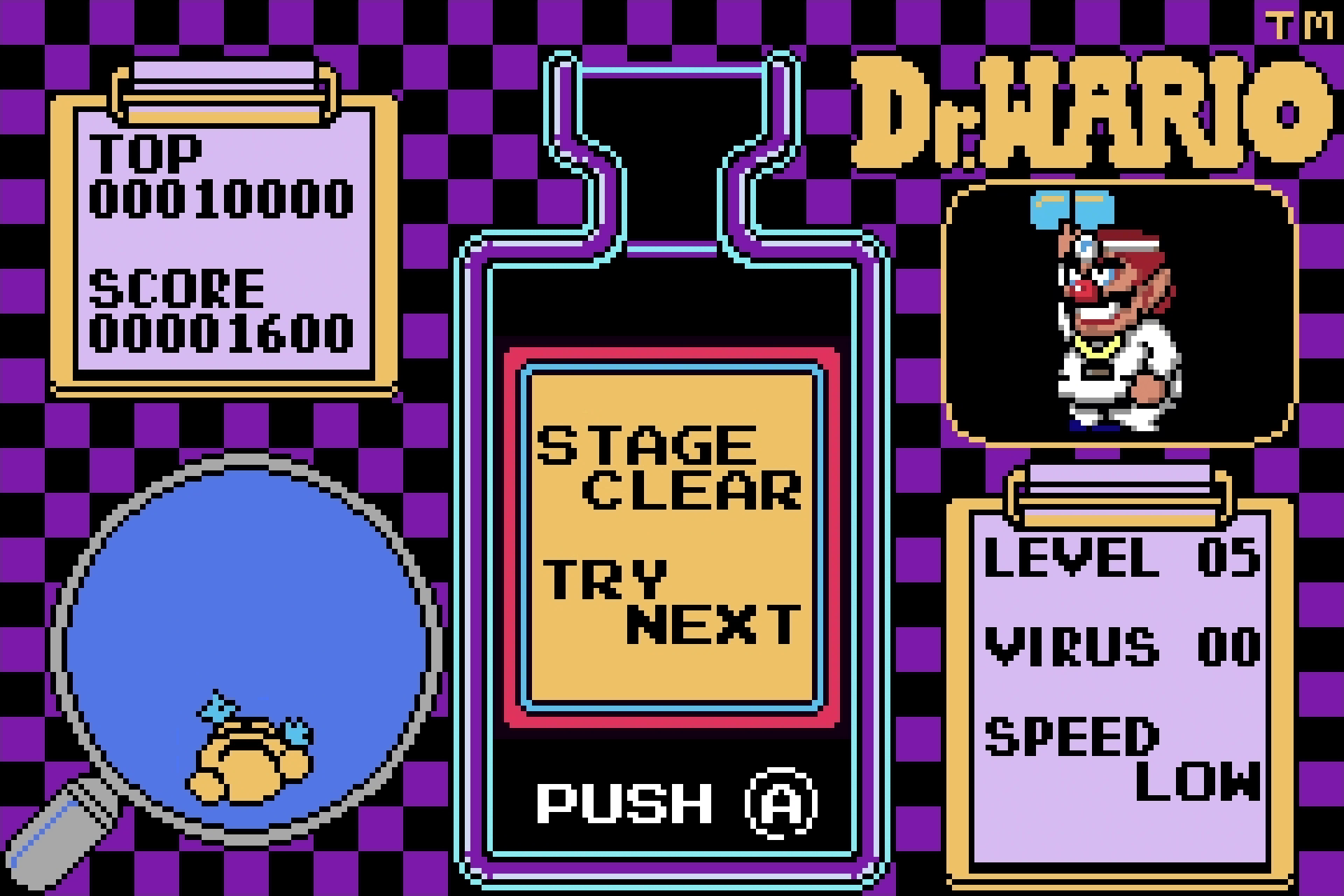 | Description | Thumbnail for "Dr. Wario: Stage Clear" from WarioWare, Inc.: Mega Microgame$! used for Nintendo Music |