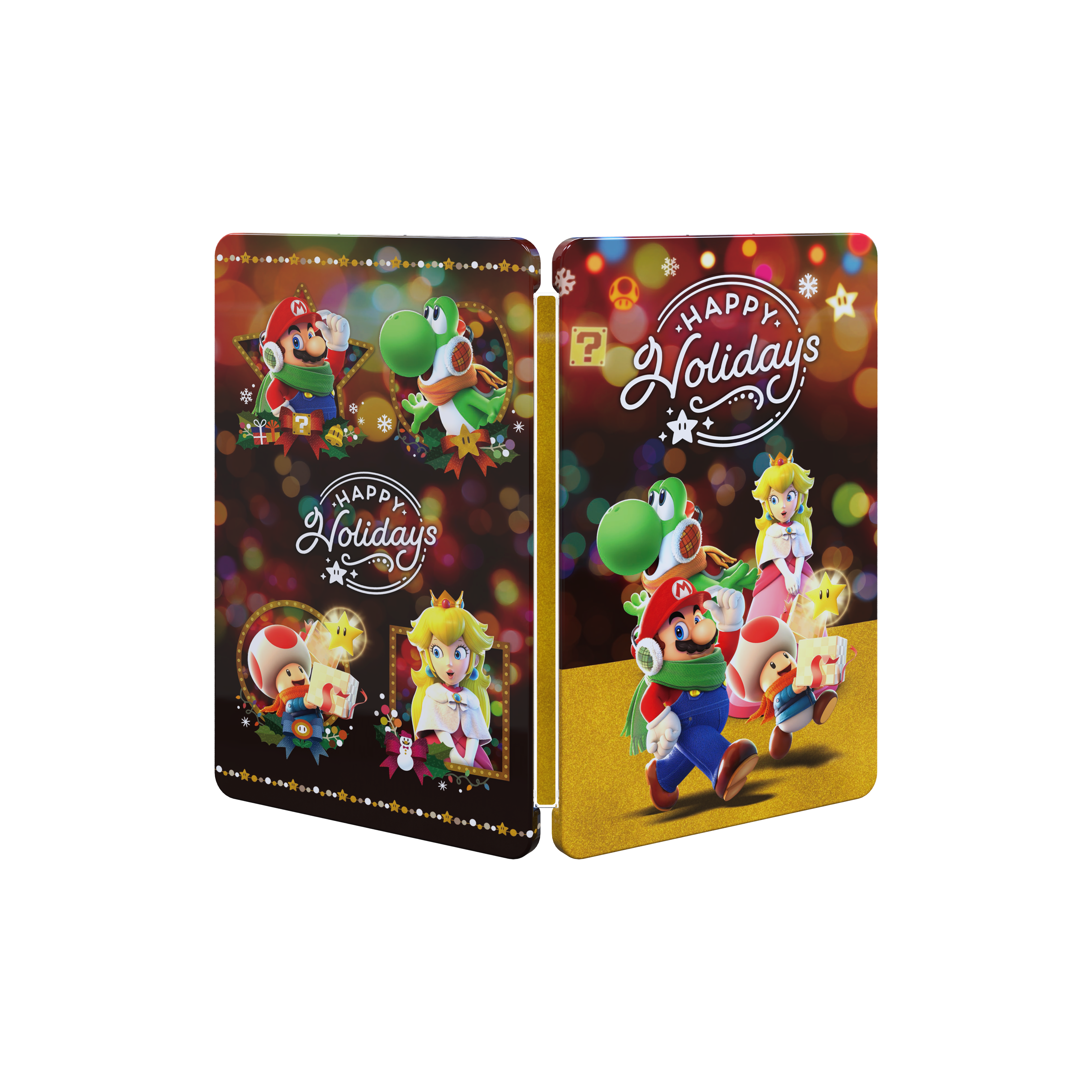| Description | Front and back sides of a SteelBook steel case for Nintendo Switch games, awarded in a winter 2021 sweepstake sponsored by Nintendo in Hong Kong. The case is Super Mario–themed, featuring Mario, Yoshi, Princess Peach, and Toad in winter outfits. |