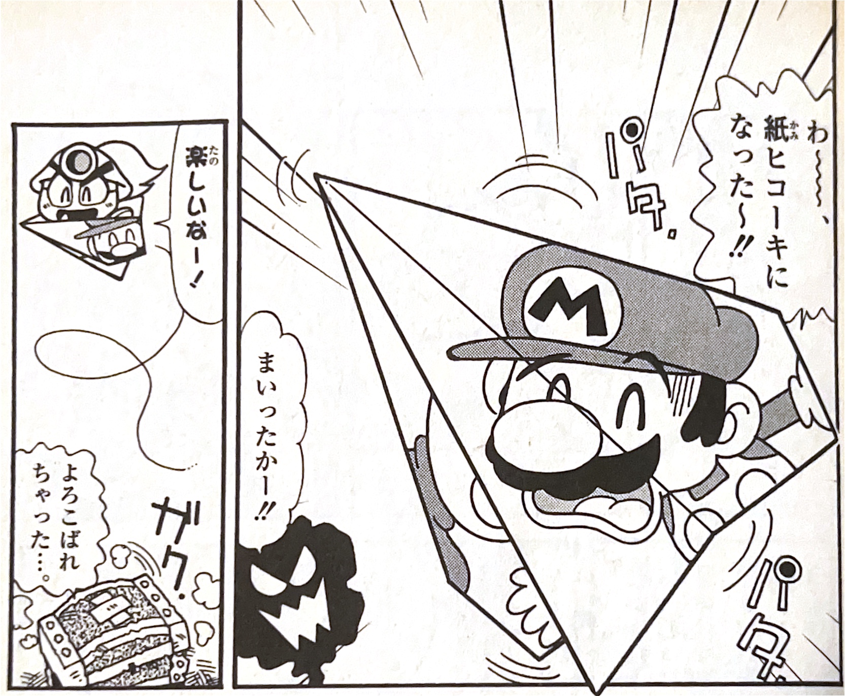 | Description | Mario cursed to fold into a paper airplane in Paper Mario RPG Special Comic |