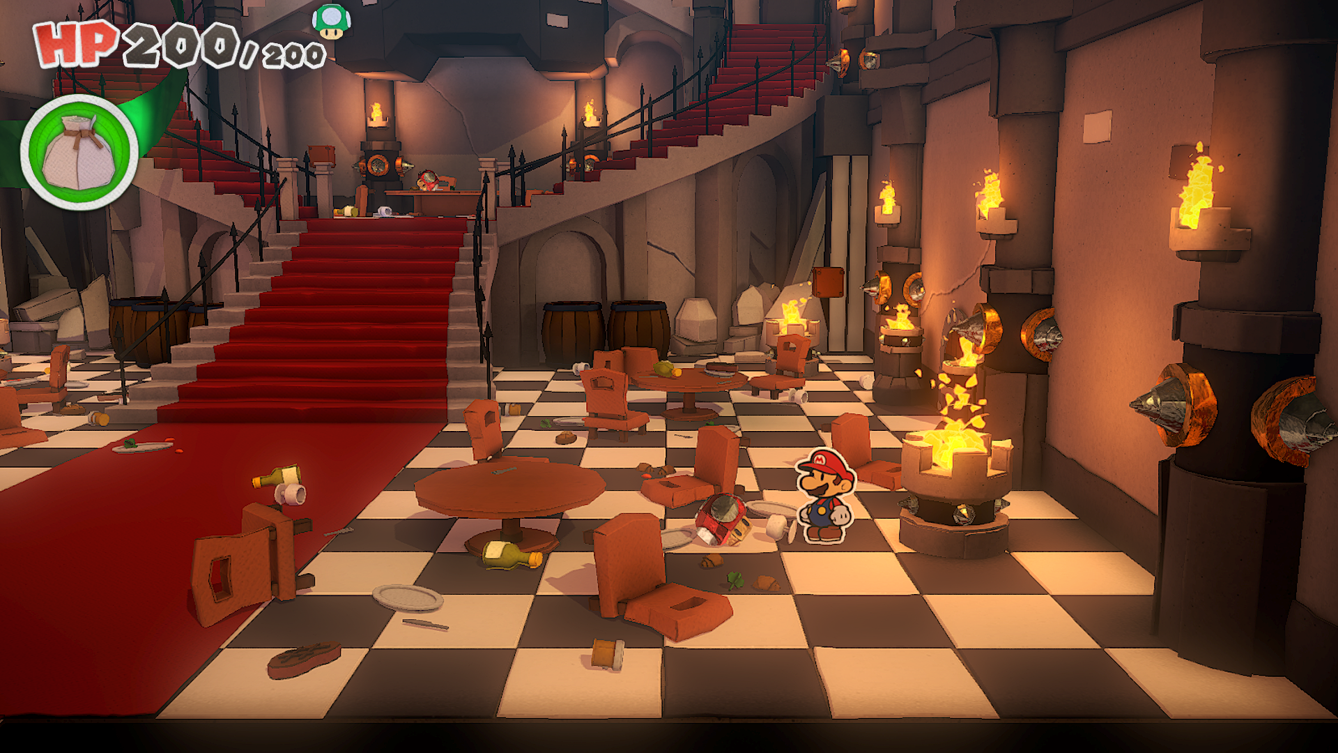 | Description | Mario standing near 2 Shiny Mushrooms in Bowser's Castle of The Origami King. |