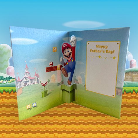 | Description | Thumbnail of a printable Super Mario-themed Father's Day pop-up card |