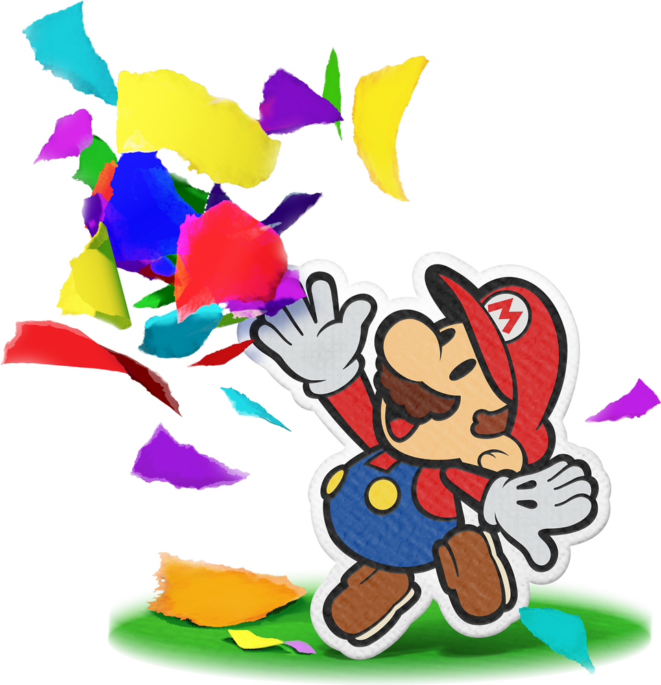 | Description | Character sticker from the Paper Mario: The Origami King Collage Maker showing Mario throwing confetti |