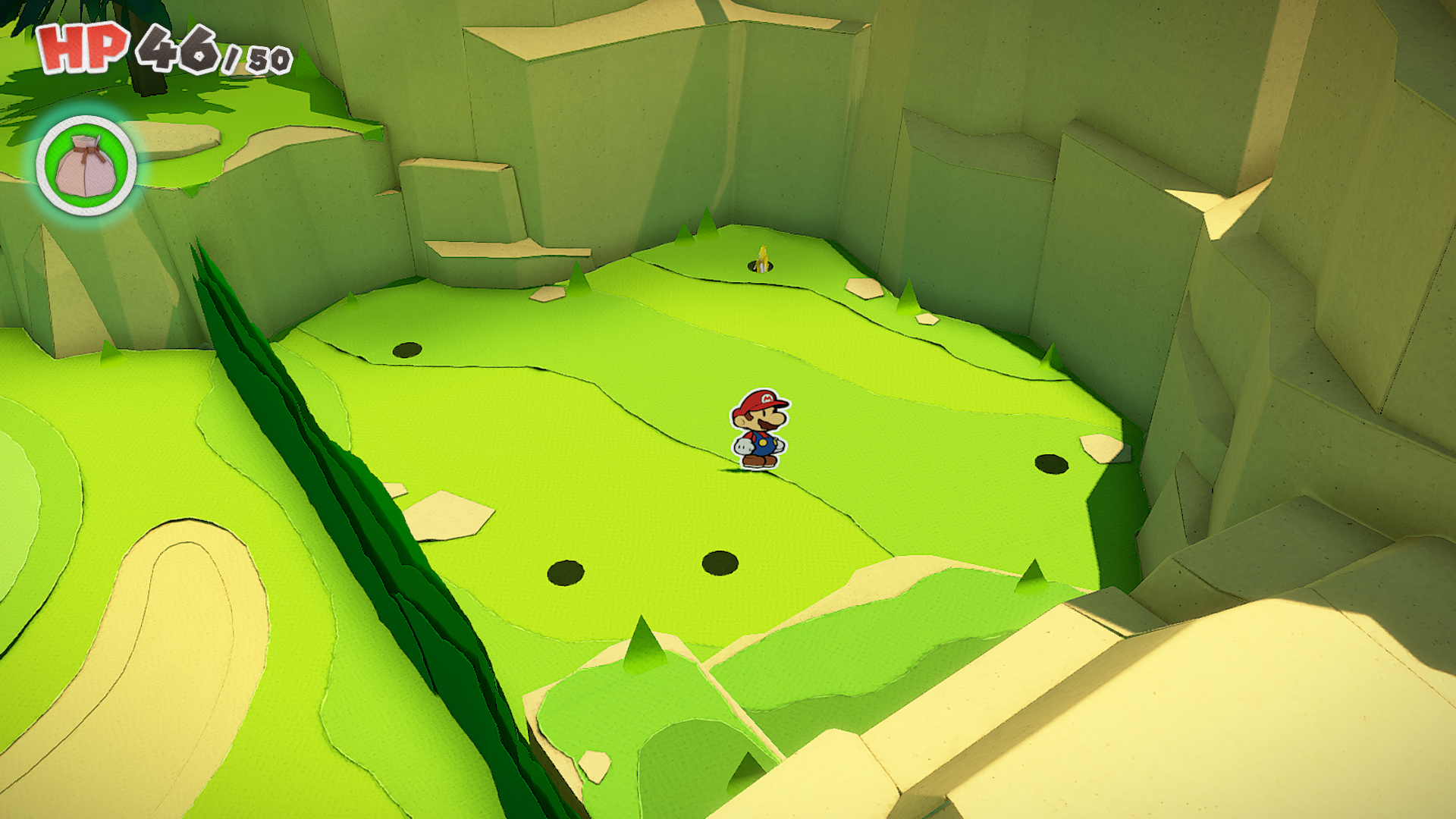 | Description | Mario standing near five holes containing a Coin each in Picnic Road of The Origami King. |