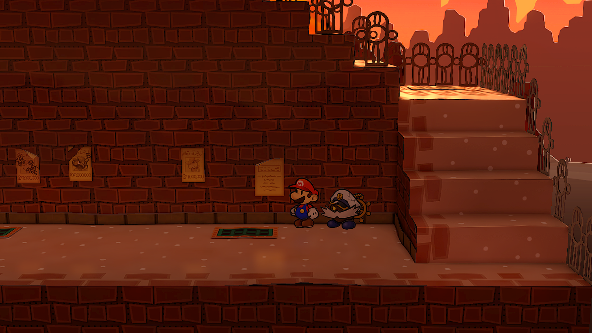 Description | Mario near the poster containing an Ice Storm in Riverside Station of Paper Mario: The Thousand-Year Door for Nintendo Switch. |