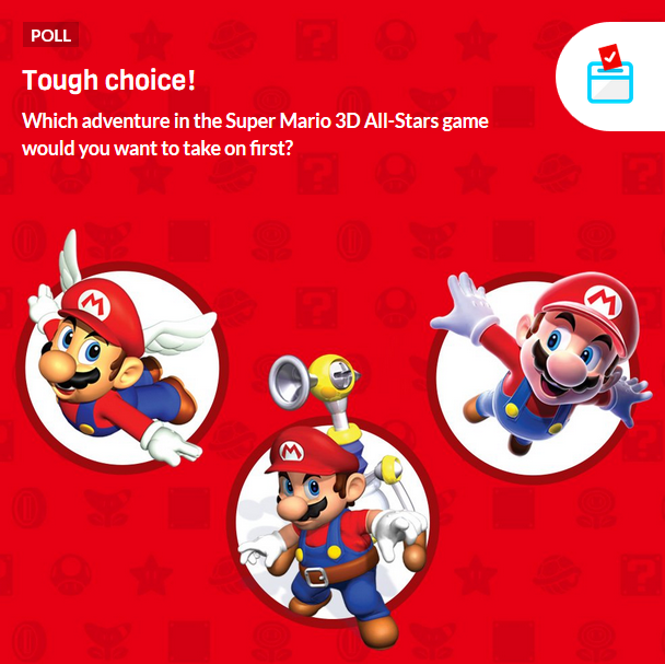 | Description | Thumbnail of a Super Mario 3D All-Stars Play Nintendo opinion poll |