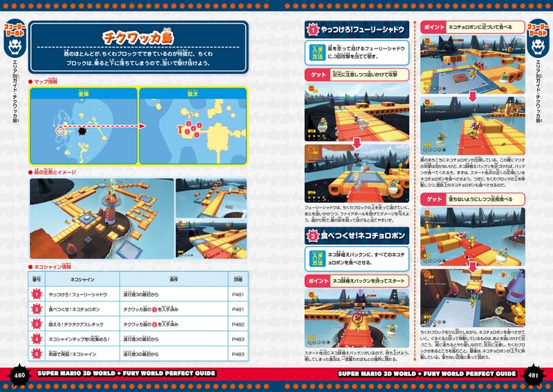 | Description | Example spread from the Super Mario 3D World + Bowser's Fury "Perfect Guide" by Famitsu |