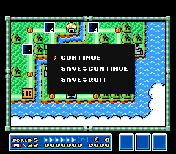 | Description | Pause screen in the Super Mario All-Stars version of Super Mario Bros. 3 |