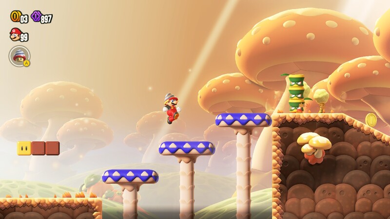 Description | Drill Mario in the Upshroom Downshroom course in Super Mario Bros. Wonder |