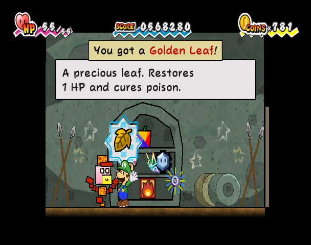 | Description | Luigi holding the 200 Shop Point reward in Super Paper Mario. |
