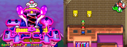 Description | Twenty-ninth and thirtieth block in Shroob Castle of the Mario & Luigi: Partners in Time. |