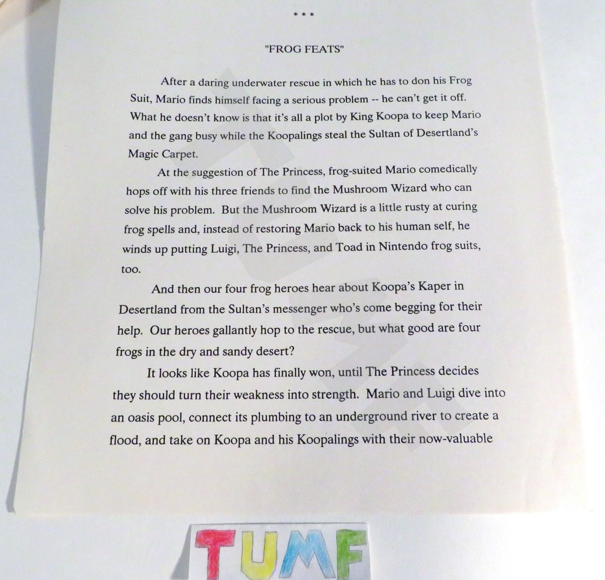 | Description | The plot summary of the unaired The Adventures of Super Mario Bros. 3 episode "Frog Feats" |