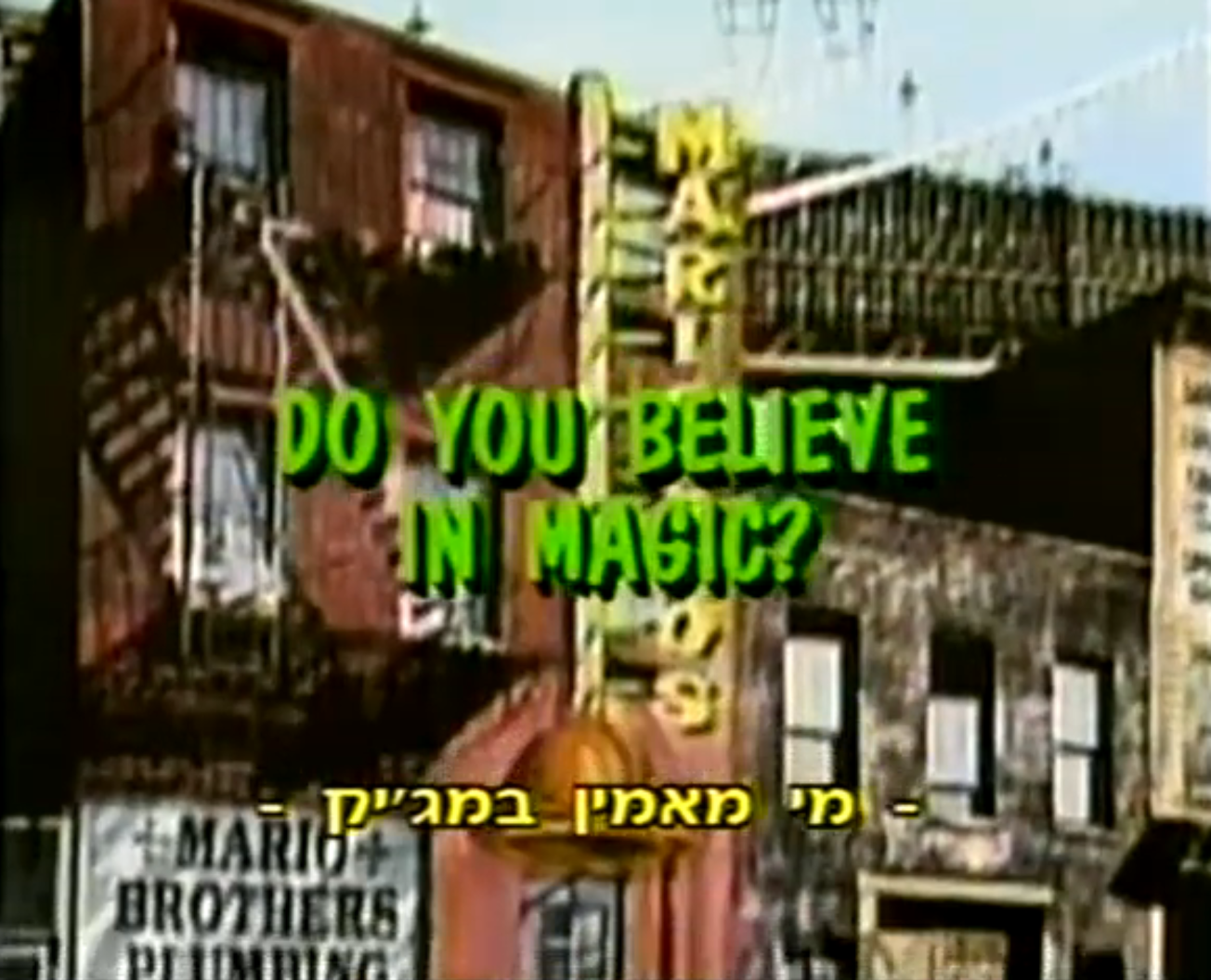 | Description | Hebrew title card for The Super Mario Bros. Super Show!] live-action segment "Do You Believe In Magic?" |