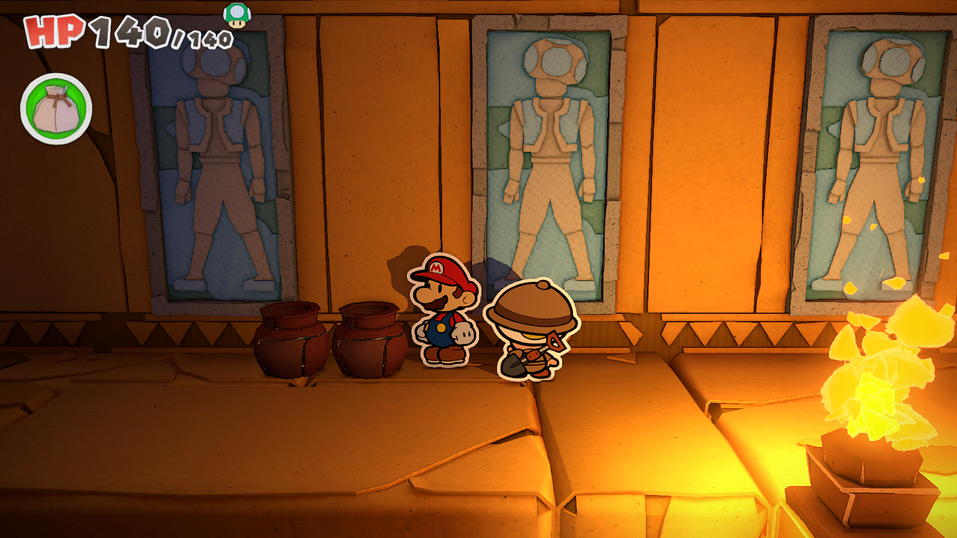 | Description | Mario standing near two vases, with one containing a Big Bag of Confetti in Temple of Shrooms of The Origami King. |