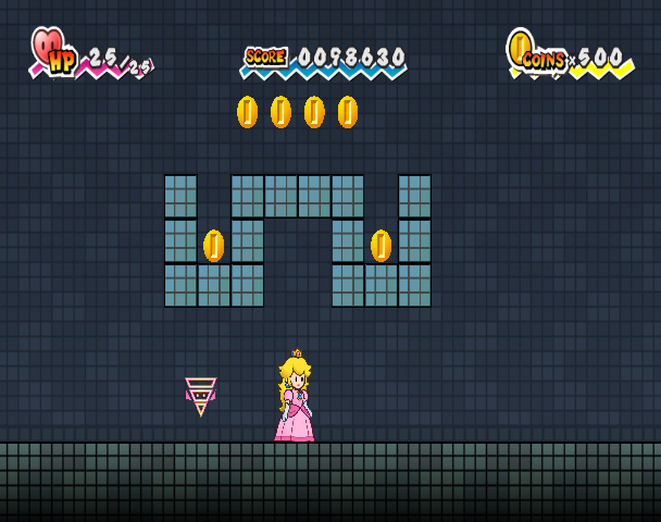 Description | Princess Peach finding 6 Coins in The Bitlands of Super Paper Mario. |